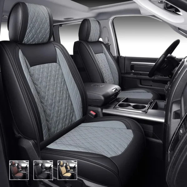 Custom Fit Leather Seat Covers for Dodge Ram 1500 2500 3500 HD Pick-up Truck Crew Quad Mega Cab-Front & Rear Seat Protector 03 Splicing Grid