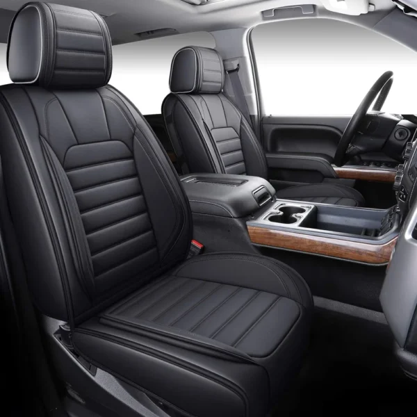 Premium leren autostoelhoezen voor auto's, SUV's en vrachtwagens - Voor- en achterbankbeschermer, op maat gemaakt ontwerp - Verticale brede strepen 18