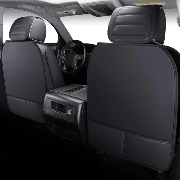 Premium leren autostoelhoezen voor auto's, SUV's en vrachtwagens - Voor- en achterbankbeschermer, op maat gemaakt ontwerp - Glad rasterpatroon 24