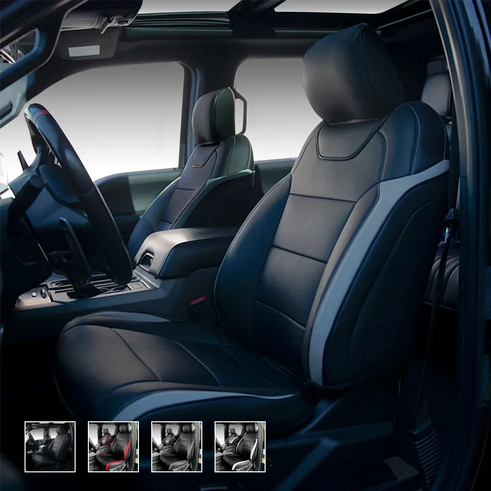 Upgrade your Ford Ranger with Covers4Car custom fit Ford Ranger seat covers, designed for drivers who want a factory-style look, long-lasting durability and full front and rear seat protection. These leather seat covers shield your interior from dirt, spills and scratches while adding extra comfort on every journey. With airbag-compatible panels, easy-to-clean surfaces and careful craftsmanship, they help your Ford Ranger stay stylish, comfortable and valuable for years to come.
