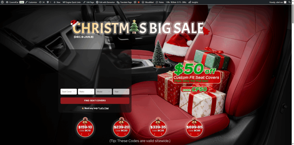 - Use the Christmas Discount Seat Covers promo while “Save Up to $50” still applies.