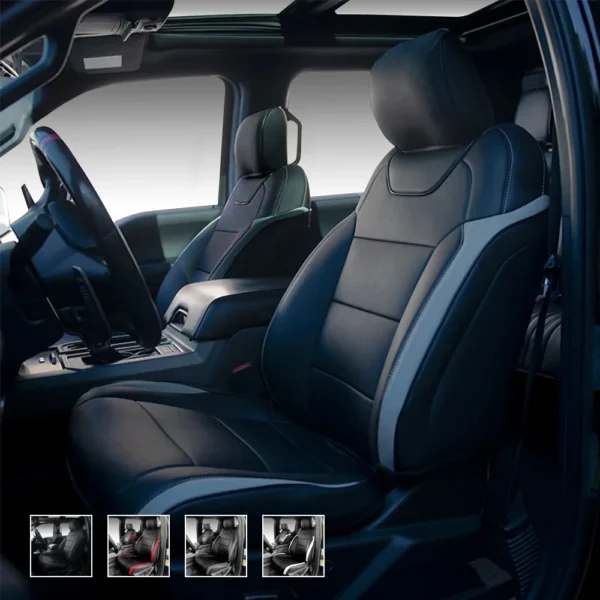 Specialfremstillede premium lædersædebetræk til Ford F-150 Raptor pickup truck - For- og bagsædebeskytter 01