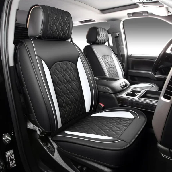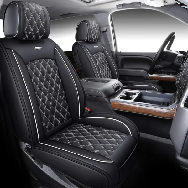 Housses de siège auto en cuir de qualité supérieure pour voitures, SUV et camions – Protection de siège avant et arrière, conception sur mesure – Avec appuie-tête à motif diamant 25